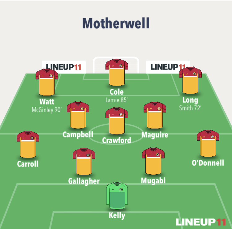 Motherwell started the game on the front foot, but for the first 10 minutes they didn’t really offer that much offensively and were nearly caught out on a number of occasions as their high line (more specifically Mugabi and Gallagher)was exploited by the hugely pacier Regan Charles-Cook and Jermaine Hylton, with Oli Shaw dropping deep to pick the ball up in midfield almost playing as a false 9.