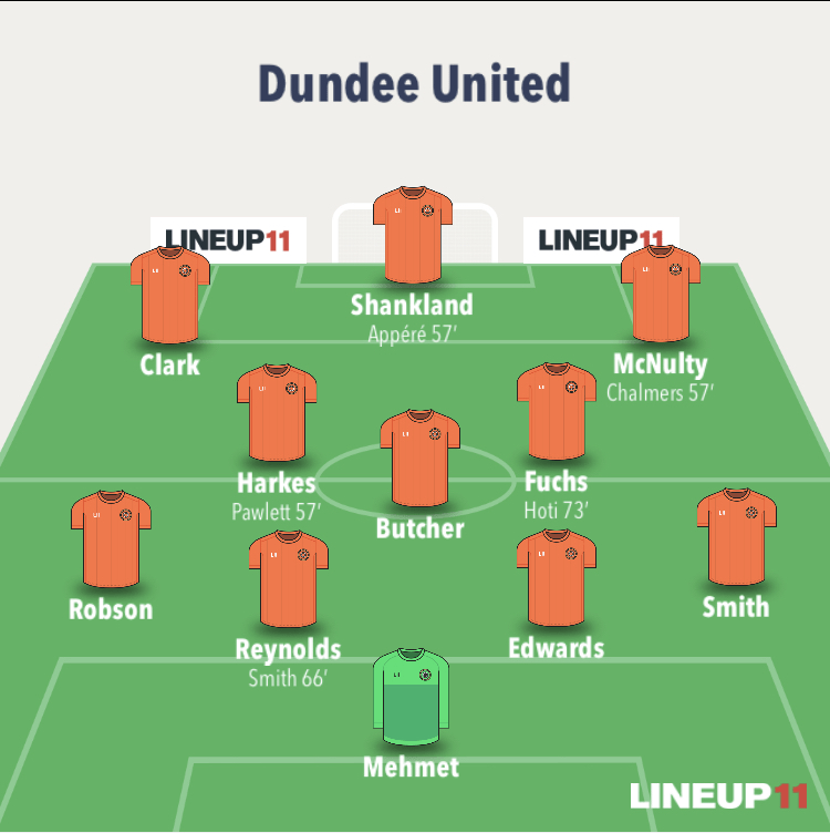 John Hughes’ men came out for the second half and refused to rest on their laurels. Their interplay was only improving, while Dundee United offered little to no threat. Micky Mellon knew something had to change, so just before the 60 minute mark, he threw on Pawlett, Appear and Chalmers. The latter nearly made an instant impact, just barely missing the top left hand corner of the Staggies goal with a curling shot. This showed that the Tangerines could still pose a threat, but for the rest of the match, they were simply pedestrian. Every time they played it forward they were met with Iain Vigurs, Jordan Tillson and Stephen Kelly, Michael Gardyne and Blair Spittal tirelessly breaking up the play in the middle of the park.